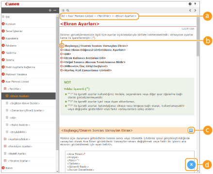 Kullanıcı Kılavuzu Öğesinin Ekran Düzeni
