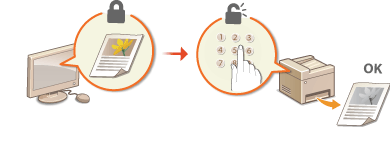 با تنظیم یک PIN برای سند زمان چاپ از رایانه، سند در حافظه دستگاه نگه داشته می شود و اجازه چاپ ندارد تا زمانی که PIN صحیح در پانل عملیات دستگاه وارد شود. این عملکرد "چاپ ایمن" نامیده می شود و سندی که با PIN محافظت می شود "سند ایمن" نامیده می شود. با استفاده از چاپ ایمن، نتایج چاپی اسناد محرمانه از بی محافظ ماندن در امان می مانند.