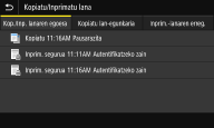 Hautatutako elementuaren uneko egoera bistaratzen du. Adibide gisa, ondoren <Kopiatu/Inprimatu lana> pantaila agertzen da.