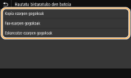 Etxea pantailari lasterbide-botoiak gehitzeko aukera duzu <Kopiatu>, <Faxa> eta <Eskaneatu> bezalako sarritan erabilitako funtzioentzat. Adibidez, lanak bizkorrago eta eraginkortasun handiagoz burutzeko aukera duzu botoi bakar bati ezarpen-sekuentzia bat esleituz (adibidez: "Original baten bi aldeak eskaneatu, oso konprimatutako PDF fitxategi gisa gorde eta posta elektronikoaren bidez bidali").