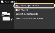 Paper-ezarpen lehenetsia erregistratu ondoren, papera kargatzean ez da paper-ezarpenen pantaila bistaratuko eta beti ezarpen bera erabiliko da. Paper-ezarpenak aldatu gabe beste paper-tamaina edo mota bat erabiltzen baduzu, baliteke makinak behar bezala ez inprimatzea. Arazo hau saihesteko, hautatu <Zehaztu papera kargatzean> 3. urratsean eta ondoren kargatu papera.
