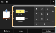 Hautatu <X> edo <Y> eta sartu alde bakoitzaren luzera zenbaki-teklak erabiliz.