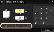 Goiko prozedurari jarraituz erregistratutako paper-tamainak berreskura ditzakezu <Pertsonalizatua> hautatuz paper-tiraderarentzako edo erabilera anitzeko erretiluarentzako paper-tamainaren hautaketaren pantailan.