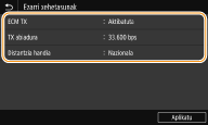Halaber, <ECM TX> eta <TX abiadura> zehazteko aukera duzu hemen: <Menua>