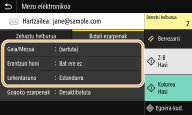 Mezu elektroniko bati original eskaneatuak eranstean, mezu elektronikoaren gaia, mezua, “erantzun honi” helbidea eta lehentasuna adieraz ditzakezu.