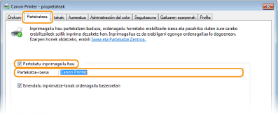 Inprimatze-zerbitzari bat erabiltzean sail-IDaren kudeaketa burutzea"Canon Driver Information Assist Service" gehitu behar da inprimagailuaren kontrolatzailea instalatzerakoan. Informazio gehiago jasotzeko, ikusi beharrezko kontrolatzaileen eskuliburuak lineako eskuliburuen web-orrian.