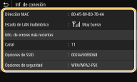 Visualización de la dirección MAC y la información para LAN inalámbrica