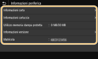 Rimuovere il dispositivo di memoria USB <Utilizzo memoria stampa protetta>Visualizza la quantità di memoria in uso per l'archiviazione dei dati dei documenti protetti.