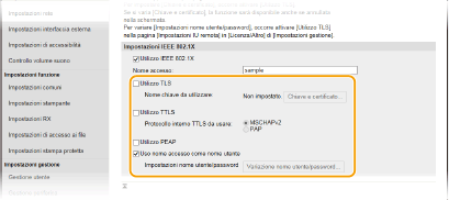 Selezionare la casella di controllo [Utilizzo IEEE 802.1X] e immettere il nome di accesso nella casella di testo [Nome accesso].