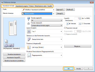 Specificare le impostazioni di stampa necessarie e fare clic su [OK].