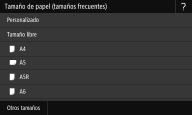 Si no aparece el tamaño de papel cargado, seleccione <Otros tamaños>.