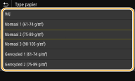 Als het bovenstaande scherm niet wordt weergegeven als papier wordt geladenAls u altijd hetzelfde papier gebruikt in de multifunctionele lade, kunt u het opgeven van de papierinstellingen overslaan door het formaat en type papier vast te leggen als de standaardinstelling. In dat geval wordt het bovenstaande scherm niet meer weergegeven. Als u het scherm wel wilt weergeven, selecteert u <Opgeven bij plaatsen papier> ( Standaard papierinstellingen voor de multifunctionele lade registreren). |
