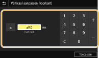 Als het document excentrisch of buiten het afdrukbereik wordt afgedrukt, moet u de afdrukpositie aanpassen. U kunt de afdrukpositie voor iedere papierbron aanpassen: in het bereik -5,0 mm tot +5,0 mm in stappen van 0,1 mm.