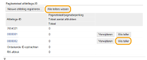 Als u de aantallen op nul wilt zetten, klikt u op de overeenkomstige tekstkoppeling onder [Afdelings-ID] en klikt u op [Wis teller]  [OK]. Als u de aantallen van alle Afdeling ID's op nul wilt zetten, klikt u op [Alle tellers wissen]  [OK]. |