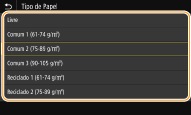 Se o ecrã mostrado acima não aparecer quando o papel é colocadoSe colocar sempre o mesmo papel no tabuleiro multifunções, pode ignorar as operações de definição do papel gravando o tamanho e o tipo do papel como predefinição. No entanto, o ecrã mostrado acima não aparece se registar a predefinição. Para ver o ecrã, selecione <Especificar ao Colocar Papel> (Registar predefinições de papel para o tabuleiro multifunções).