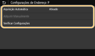 Selecione <Aquisição Automática> e defina <Selecionar Protocolo> e <IP Automático> para <Desativado>.