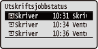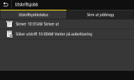 Viser gjeldende status for det valgte elementet. <Utskriftsjobbstatus>-skjermen vises under som et eksempel.