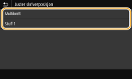 Hvis et dokument skrives ut skjevt eller utenfor det skrivbare området, må du justere utskriftsposisjonen. Du kan justere utskriftsposisjonen for hver papirkilde. Du kan justere utskriftsposisjonen i området -5,0 mm til +5,0 mm i trinn på 0,1 mm.