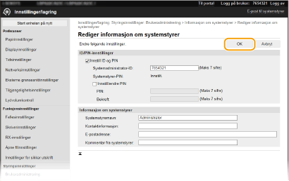 Noen innstillinger kan bare endres når du er logget inn i systemstyrermodus. Noen innstillinger kan kreve operasjoner som skiller seg fra prosedyren som beskrives her. |