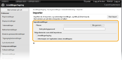 Kryss av i avmerkingsboksen hvis du vil importere innstillingsdata for Application Library (Applikasjonsbibliotek).