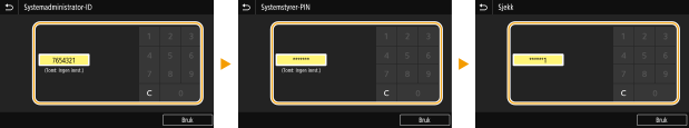 Konfigurere innstillinger via FjernkontrollStart Fjernkontroll, og logg på i systemstyrermodus. Klikk på [Innstillinger/lagring] [Brukeradministrering] [Informasjon om systemstyrer] [Rediger] og angi de nødvendige innstillingene på skjermbildet som vises.Ved å bruke Fjernkontroll kan du registrere forskjellige typer informasjon, inkludert kontaktinformasjon, kommentarer fra administrator, installasjonsplasseringen til maskinen, i tillegg til innstillingene du kan registrere ved å bruke betjeningspanelet. Den registrerte informasjonen kan vises på siden [Enhetsinformasjon] i Fjernkontroll. Kontrollere informasjon om systemadministrator Logge på maskinenHvis du prøver å få tilgang til elementer som krever administratorrettigheter, for eksempel <Nettverk> og <Styringsinnstillinger>, når systemstyrer-ID er angitt, vil skjermbildet for innlogging vises. Logge på maskinen Du må også taste inn systemstyrer-ID-en og PIN-koden for å logge på Fjernkontroll i systemstyrermodus. Starte grensesnittet for Fjernkontroll |