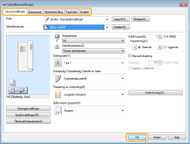 Angi utskriftsinnstillingene etter behov, og klikk på [OK].