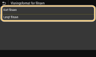 Velg <Kort filnavn> eller <Langt filnavn>