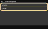 Hvis du binder inne utskriftene med en innbindingsverktøy, som for eksempel en stiftemaskin, må du bruke dette elementet til å angi om dokumentet skal bindes på lang- eller kortsiden. Angi innstillingen av dette elementet i kombinasjon med <Innbindingsmarg>, som angir hefteranden som gjelder for hefteposisjonen.