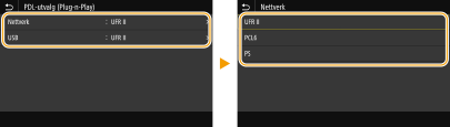 Velg et sidebeskrivelsesspråk, slik at maskinen registreres som en skriver som er kompatibel med dette språket, når den kobles til en datamaskin ved hjelp av Plug-n-Play.