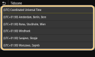 Hva er UTC?Tidssonen Coordinated Universal Time (UTC) er standard tidssone som verden stiller klokker og tid inn etter. Tidsforskjellen avhenger av landet eller området der maskinen brukes. Korrekt innstilling for UTC-tidssone kreves for kommunikasjon med Internett. |