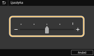 Du kan ändra en mängd skärmrelaterade inställningar, t.ex. vilket språk som ska visas: <Skärminställningar> Du kan ändra den skärm som automatiskt visas när enheten inte har använts under en viss angiven tid: <Funktion eft. autoåterställn.> Du kan ändra olika inställningar för att underlätta användningen av enheten, t.ex. skärmens ljusstyrka: <Hjälpmedel> |