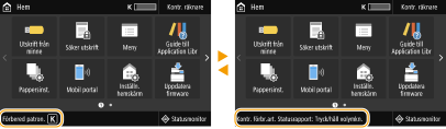 Meddelanden visas på skärmen i situationer som när papperet eller tonerpatronen tar slut. Mer information finns i "Felsökning (FAQ)" på webbsidan med onlinehandböcker.