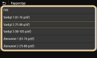 Om du ofta behöver byta papperstyp när du fyller på papper kan du ange <Fritt> för att spara tid genom att inte behöva ändra inställning varje gång. Notera dock att med den här inställningen görs utskrifter även när inställningen för papperstyp i skrivardrivrutinen inte stämmer överens med den papperstyp som har fyllts på i enheten.