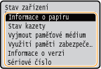 <Vyjmout paměťové médium>Slouží k bezpečnému vyjmutí paměťového zařízení USB. Zobrazí se pouze v případě, že je k přístroji připojeno paměťové zařízení USB.