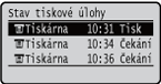 Umožňuje zobrazit aktuální stav vybraných položek. Jako příklad je níže uvedena obrazovka <Stav tiskové úlohy>.
