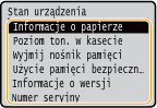 ) zostanie wyświetlony ekran umożliwiający sprawdzenie stanu dokumentów, a także stanu urządzenia oraz informacji o ustawieniach sieciowych.