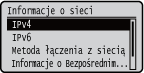 Umożliwia wyświetlenie ustawień sieciowych, np. ustawień adresu IP urządzenia, oraz stanu sieci, np. poprawności działania bezprzewodowej komunikacji LAN.