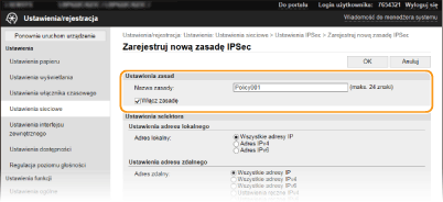 W polu tekstowym [Nazwa zasady] wprowadź nazwę zasady składającą się ze znaków alfanumerycznych, aby móc później ją zidentyfikować.