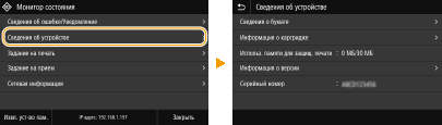 Можно изменить различные параметры, связанные с отображением, например используемый язык: <Настройки отображения> Можно изменить экран, который автоматически отображается, если аппарат бездействует в течение указанного количества времени: <Функция после автоматич. перезапуска> Можно изменить различные параметры, связанные со специальными возможностями, например скорость прокрутки: <Специальные возможности> |