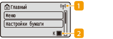 ![]() | Значок Wi-FiОтображается, когда аппарат подключен к беспроводной сети. Оставшийся объем тонера в картриджахСтупенчато отображает оставшееся количество тонера в картриджах. Этот индикатор скрыт, когда активен экран Главный. |
