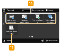 ![]() | Клавиша Application Library (Библиотека приложений)Эти кнопки можно использовать для удобного выполнения функции одним касанием. Дополнительные сведения см. в руководстве по библиотеке Application Library (Библиотеке приложений) на веб-сайте интернет-руководств. <uniFLOW Online Setup>Вы можете проверить состояние эксплуатации устройства и пользователя, обратившись в облачный сервис. Дополнительные сведения см. на веб-сайте Canon. |
