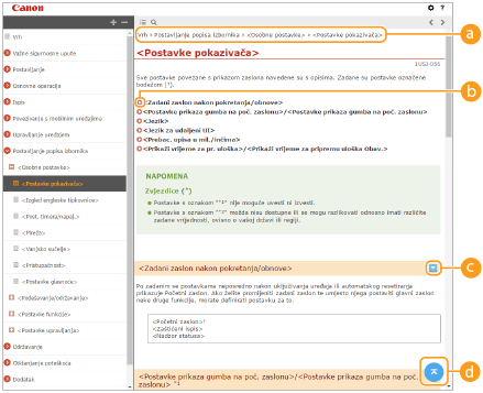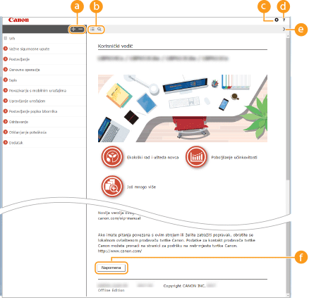 Kliknite da biste prikazali informacije o tome kako pregledati Korisnički vodič, kako pretraživati itd.