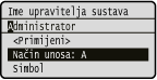 ili odaberite <Simbol> pa pritisnite kada je vrsta teksta koji unosite <A> ili <a> da bi vam se prikazali znakovi koje možete unijeti na zaslon. Pomoću tipki / / / odaberite simbol koji želite unijeti pa pritisnite . |