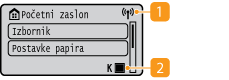 Prikazuje količinu preostalog tonera u spremnicima u fazama. To je skriveno dok je aktivan Početni zaslon.