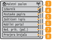 na upravljačkoj ploči. Na tom zaslonu možete određivati postavke i registrirati funkcije.