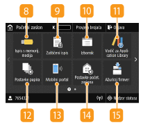 Pritisnite da biste provjerili status ispisivanja, pogledali povijest korištenja te da biste pogledali mrežne postavke, npr. IP adresu uređaja. Možete i provjeriti status uređaja, primjerice količinu papira u uređaju, preostalu količinu tonera te je li došlo do pogrešaka. Zaslon <Nadzor statusa>