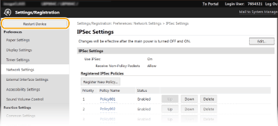 Ovisno o stavkama postavki koje su promijenjene, možda ćete prije stupanja promjena na snagu morati ponovno pokrenuti uređaj. U ovom se odjeljku opisuje ponovno pokretanje uređaja.