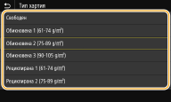 Ако екранът, показан по-горе, не се извежда, когато хартията е зареденаАко винаги зареждате една и съща хартия в многофункционалната тава, можете да пропуснете операциите за задаване на настройки за хартията, като запаметите формат и тип на хартията като настройка по подразбиране. Когато настройката по подразбиране е запаметена, екранът, показан по-горе, не се извежда. За да изведете екрана, изберете <Задаване при зареждане на хартия> (Задаване на настройки за хартия по подразбиране за многофункционалната тава). |
