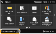 Когато се изведе съобщение При печат – можете да продължите да отпечатвате оригинала. Ако се изведе съобщение, докато получавате I-факс документ, устройството няма да изпълни отпечатването, за да се избегнат неясните разпечатки. За да продължите да печатате дори когато в касетата остава малко количество тонер, задайте настройката <Прод. печат. При ниско колич.>/<Прод. печат. Когато кол. в кас. е малко> на <Вкл.>. <Прод. печат. При ниско колич.>/<Прод. печат. Когато кол. в кас. е малко>Укажете кога да се извежда съобщение |