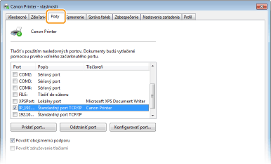 Ak používate sieťové pripojenie a zmenili ste adresu IP zariadeniaMusíte pridať nový port. Konfigurácia tlačových portov